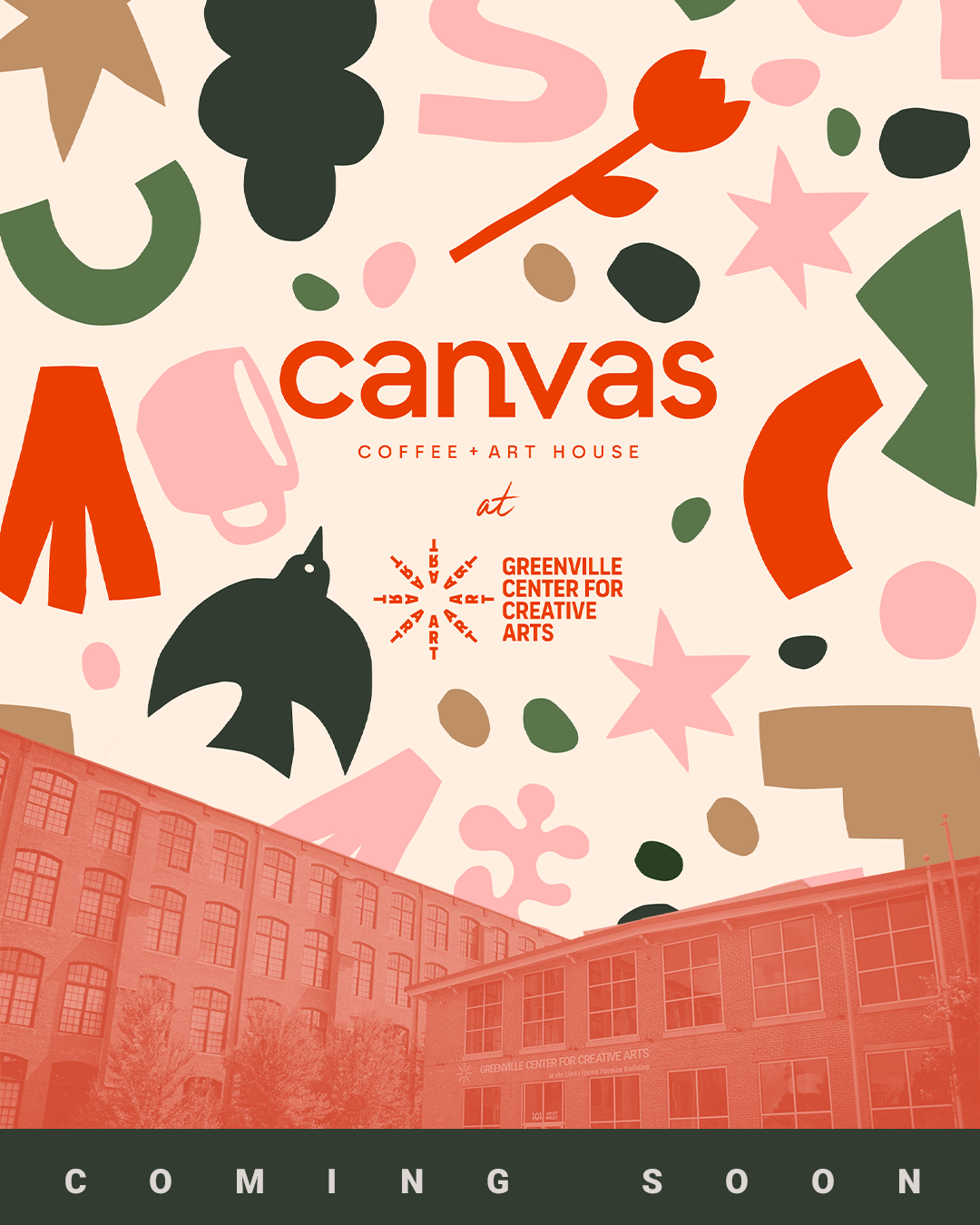 Canvas at GCCA is our coffee cart inside Greenville Center for Creative Arts — a smaller extension of what we love most about Canvas: good coffee, creative energy, and meaningful community. We’re excited to serve artists, students, neighbors, and visitors in a space that already celebrates beauty and making, offering a simple, thoughtful menu designed to bring warmth and connection to the heart of GCCA.109 W Stone Avenue Suite E4